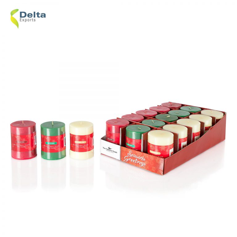410 gm scented pillar candle of 3″ x 4″- 3 asstd in display